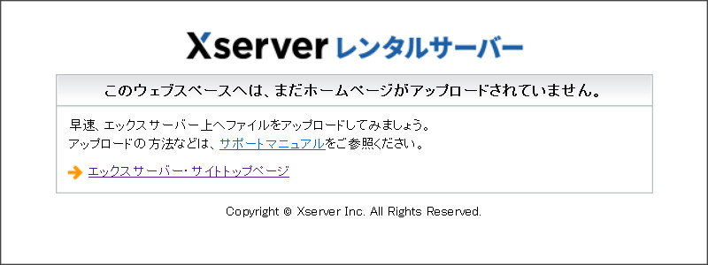 このようにエックスサーバーのデフォルトの画面に変われば、反映が完了です。